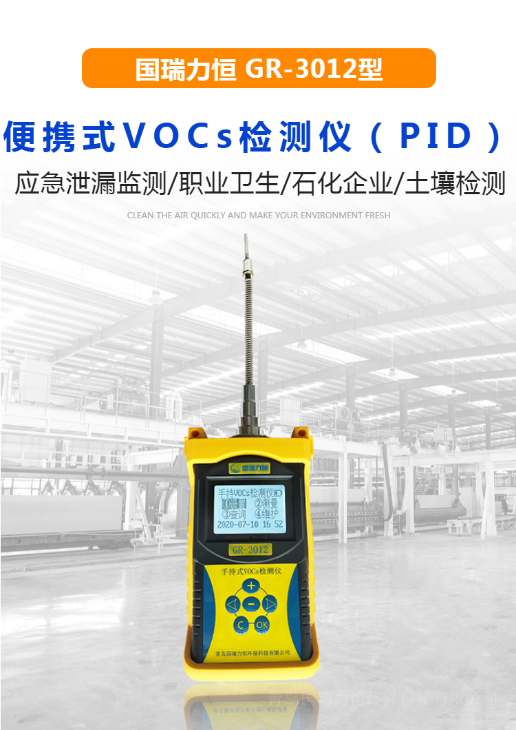 国瑞力恒手持式土壤VOCs检测仪3012型手持式VOCs检测仪(以下简称检测仪)是我公司研发的一款PID光离子化检查原理快速测量总挥发性有机物浓度的手持式仪器。本仪器主要用于现场检测环境空气,应急(泄漏)事故监测、职业卫生场所、石化企业安全检测以及储罐、管道、阀门泄漏检测等的总挥发性有机物浓度,根据不同的需求可选配不同量程的传感器。