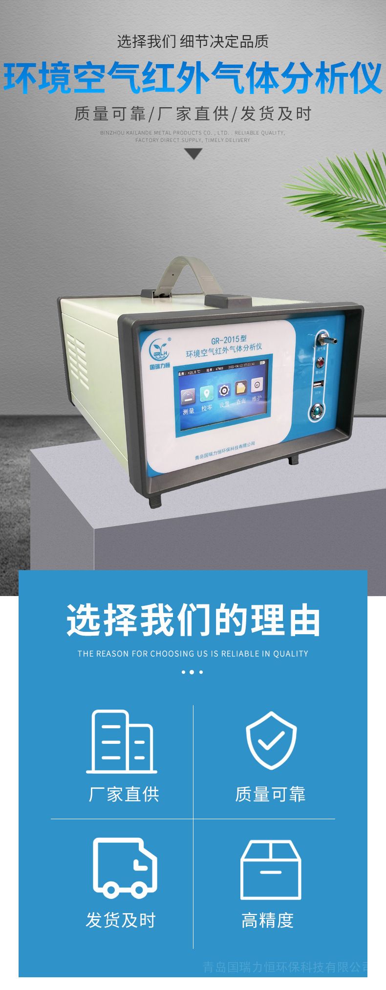 公司主营产品:不分光红外CO/CO2分析仪、烟气分析仪、油烟检测仪、烟气流速湿度仪、自动烟尘烟气测试仪、VOCs采样器、恒流大气采样器、大气颗粒物综合采样器、烟气采样器、颗粒物采样器、粉尘采样器、氟化物采样器、重金属采样器、微生物采样器、浓缩微生物采样器、水质采样抽滤器、气体检测仪、甲醛检测仪、挥发性有机物检测仪、移动电源、烟气预处理器、恶臭实验室整套方案等 -