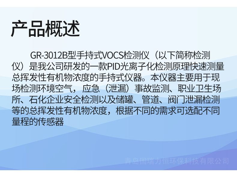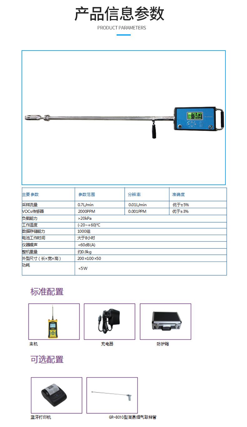 GR3021B阻容法含湿量检测仪多功能烟气湿度检测仪(以下简称检测仪) 是一款高精度便携一体式烟气湿度、流速、工况参数检测仪, 仪器采用进口传感器,自带温度、压力补偿修正,具有测量 精度高,耐腐蚀,使用温度范围宽等优点,广泛应用于锅炉、炉窑以及各种排风管道的烟气湿度、烟气流速、烟气流量、 标干流量、动压、静压及烟温等参数的测定
