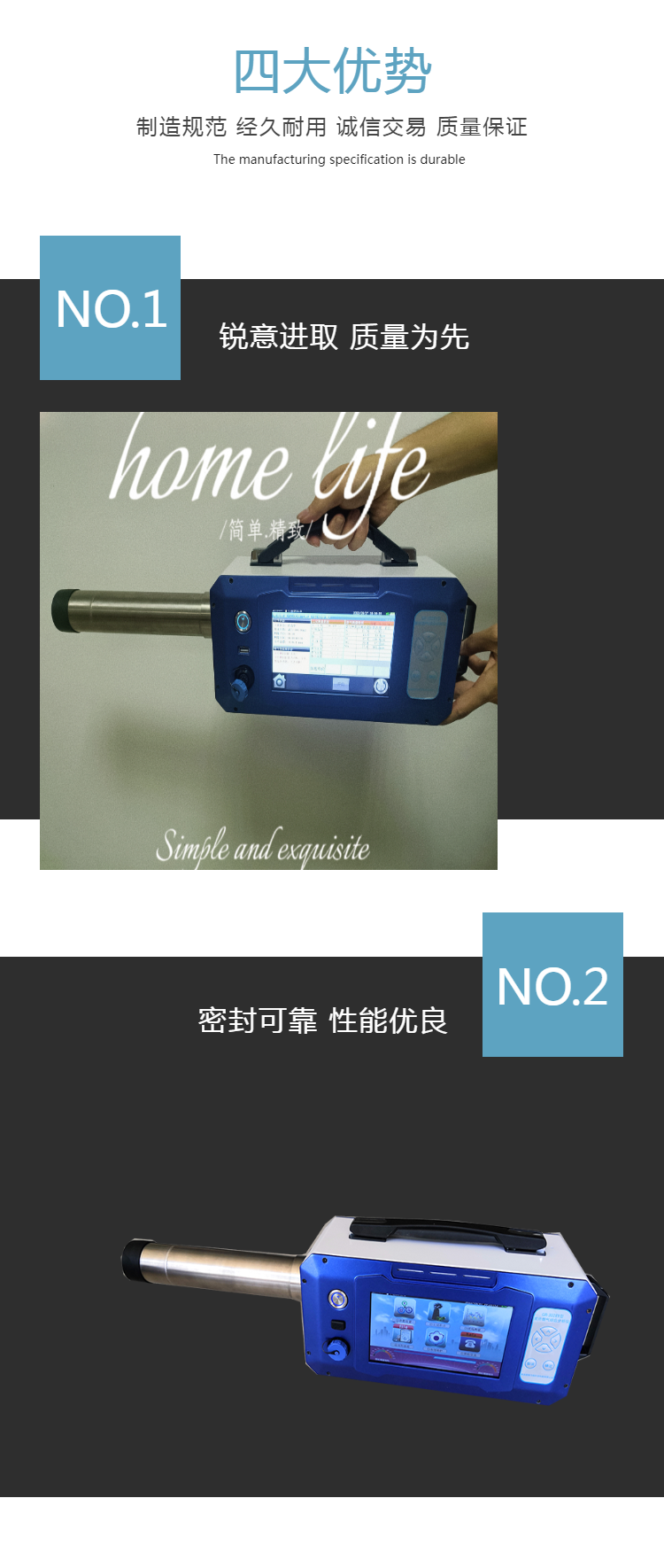 6)配有高温探针,满足不同烟温工况,取样管可拆卸设计,便于携带,用户可另外根据需要选配不同长度的取样管