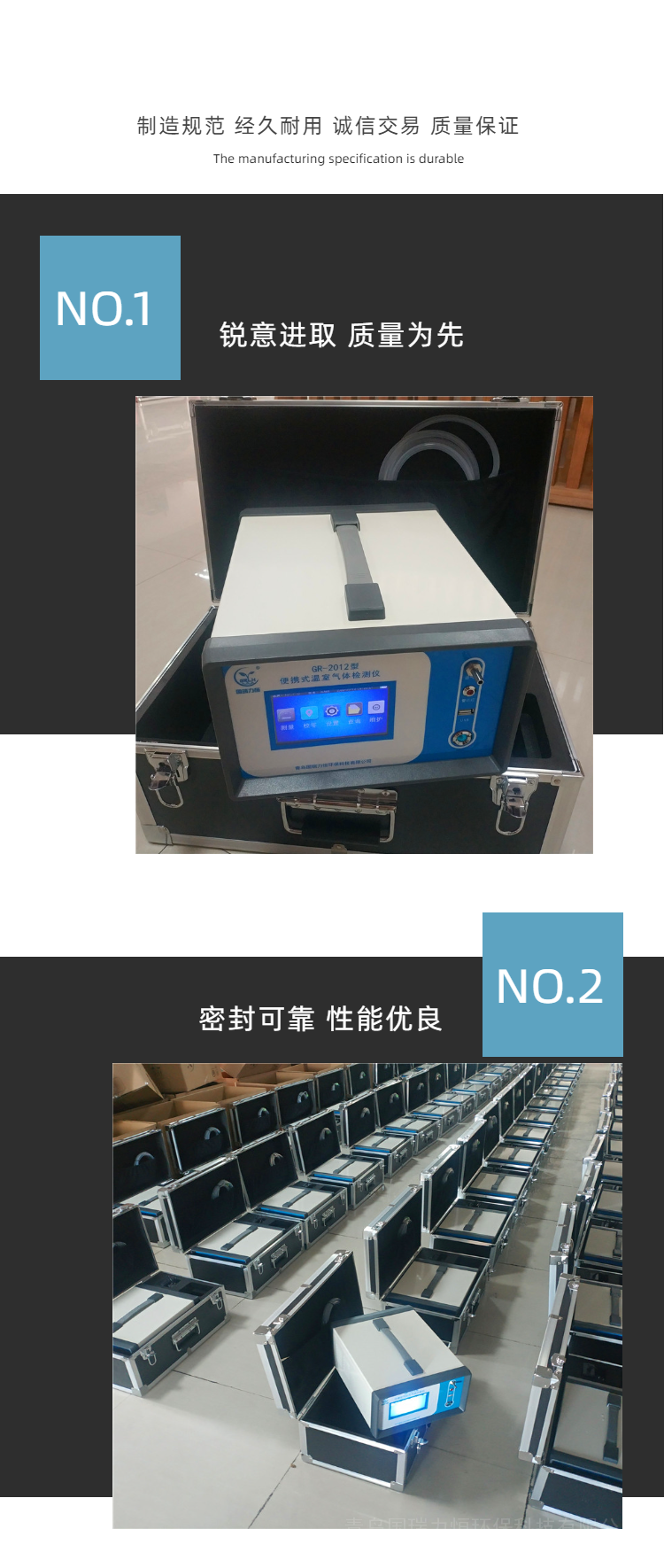 产品简介GR-2012型便携式温室气体检测仪(以下简称检测仪) 是我公司针对环境空气中排放的温室气体进行检查的高精度 仪器,仪器采用红外法、紫外光度法原理测量温室气体浓度, 具有测量精度高,使用寿命长,交叉干扰小等优点,是环境 监测领域的必备仪器