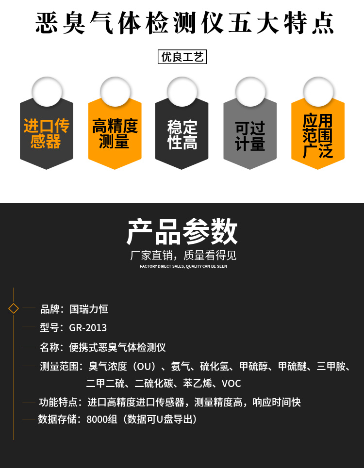 - 国瑞力恒便携式恶臭气体分析仪 臭气OU 氨气 硫化氢等GR2013