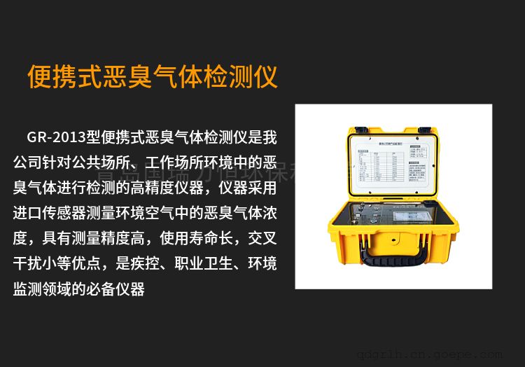 GR-2013型便携式恶臭气体检测仪(以下简称分析仪)是我公司针对公共场所、工作场所环境中的恶臭气体进行检测的高精度仪器,仪器采用进口传感器测量环境空气中的恶臭气体浓度,具有测量精度高,使用寿命长,交叉干扰小等优点,是环境监测领域的必备仪器